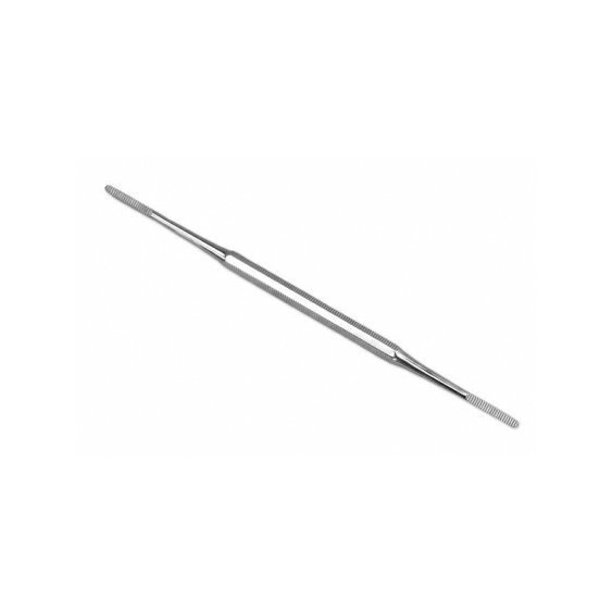 Celokovový nástroj k pilování okrajů nehtů. Oboustranný jemný pilník na jedné straně rovný, na druhé straně mírně zahnutý. Praktický pomocník u zarůstajících nehtů. Vhodný ke sterilizaci a dezinfekci.